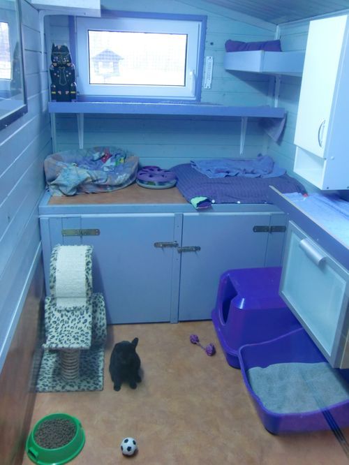 Das blaue Einzelzimmer Oftmals schon das ´Partyzimmer´ der jüngsten Gäste gewesen, bietet es doch ausreichend Raum - nicht nur für eine Katze. Hier finden auch mehrere Tiere Platz, die alle ihren eigenen Kuschelplatz erobern können. Auch eine kleinere Katzengruppe kann sich dieses Zimmer nicht nur im Sommer teilen, da in Verbindung mit dem Aussengehege letztlich viel Raum zur Verfügung steht. |